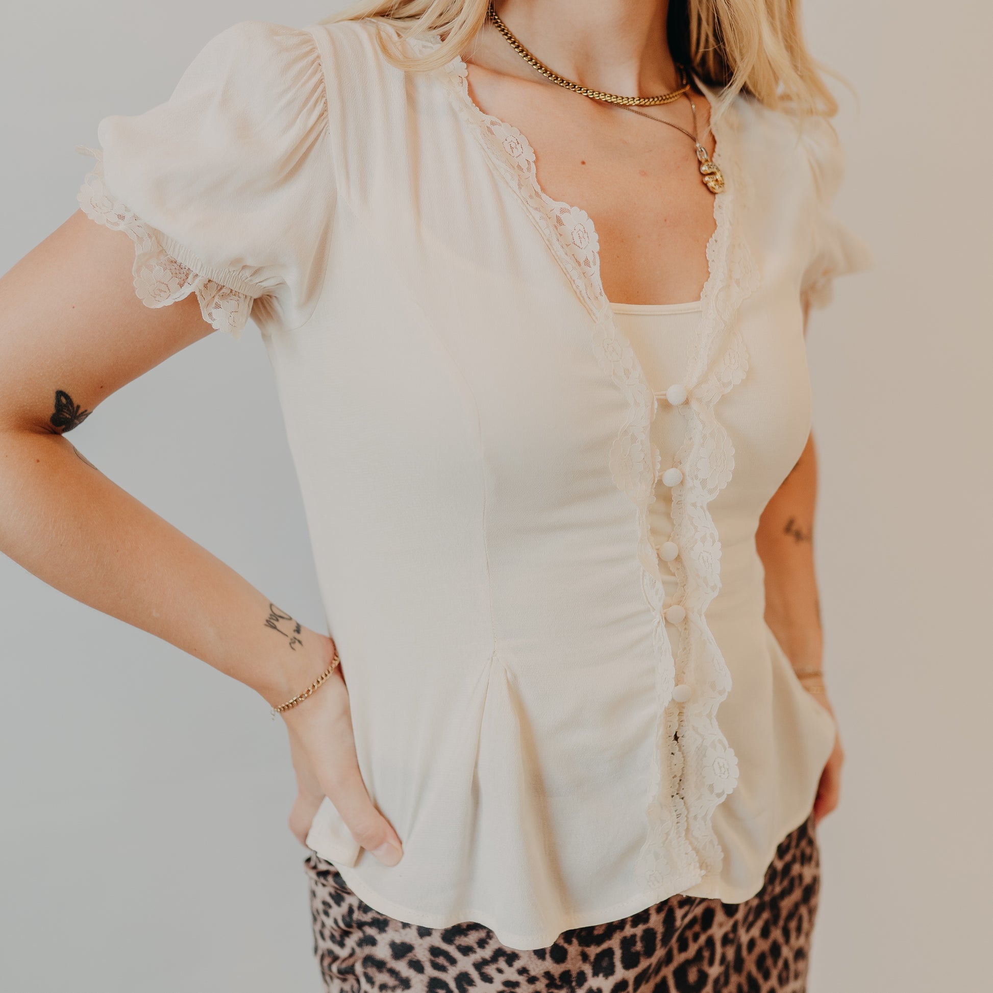 Blu Pepper | Lace Trim Puff Sleeve Blouse | Cream
