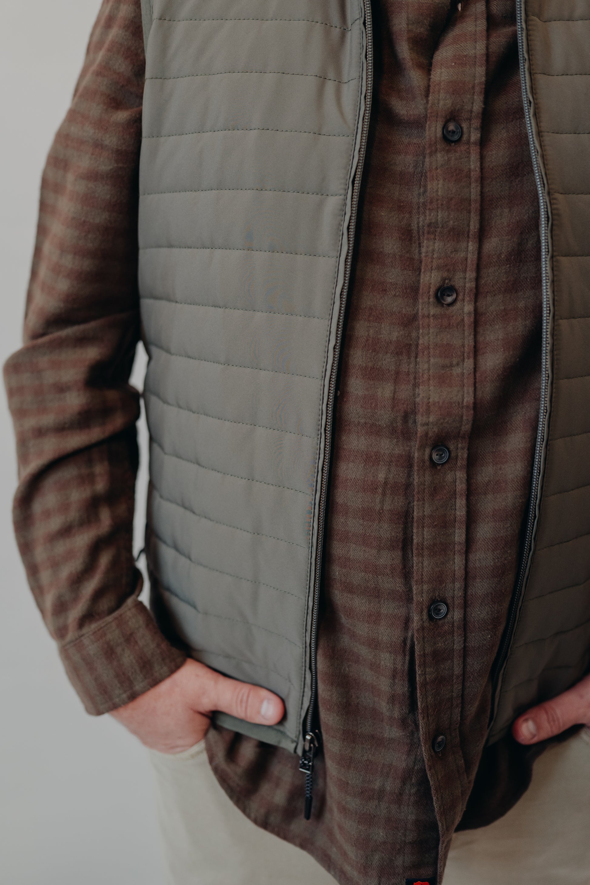 AN ARMY GREEN COLORED TEXTURED VEST THAT IS THE PERFECT ACCENT TO ANY OUTFIT.