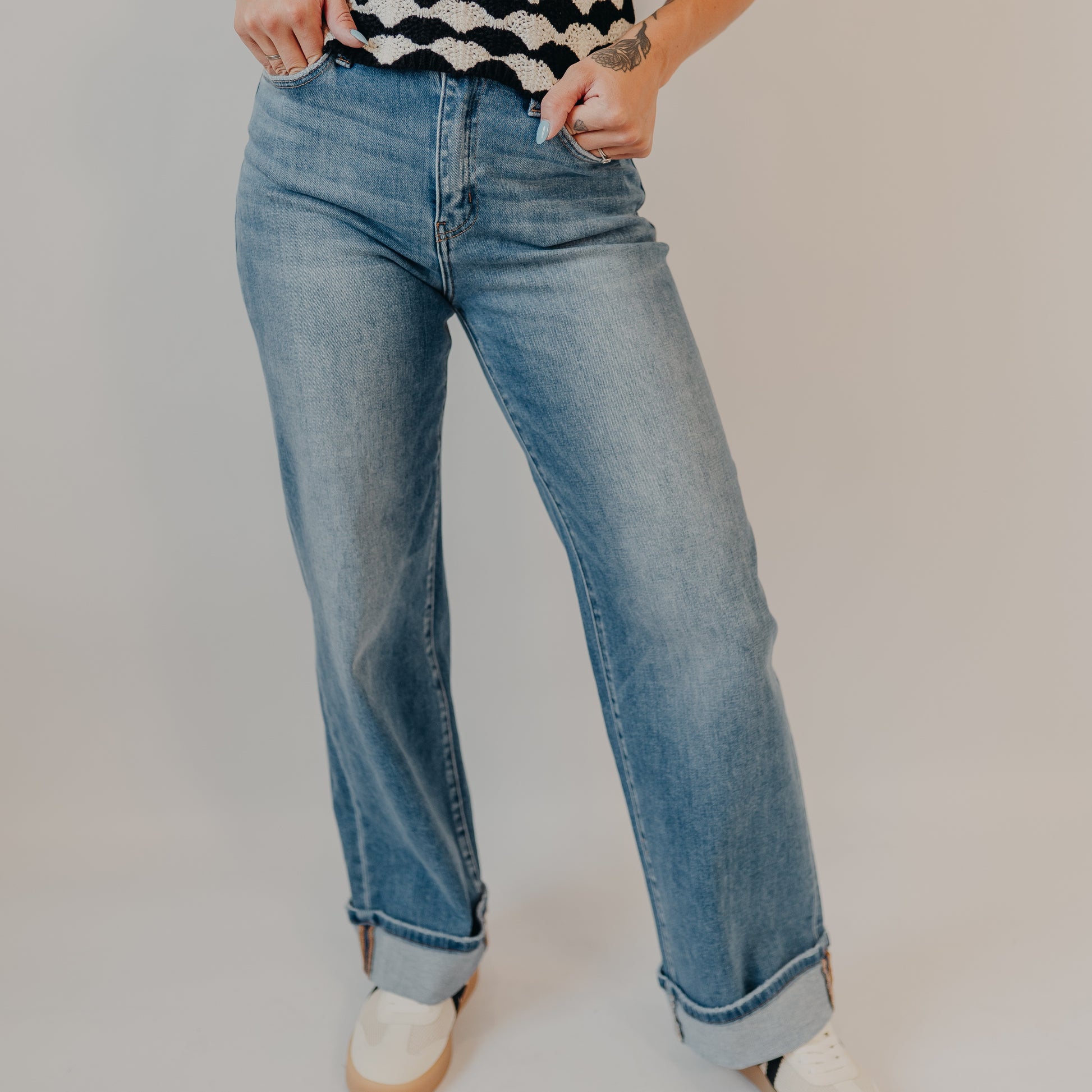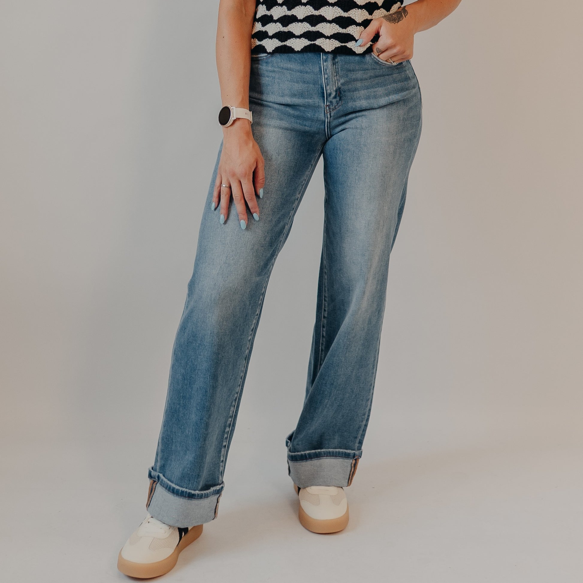 Your everyday denim just got an upgrade—these relaxed wide-leg jeans are an easy favorite for both casual days and dressed-up nights. The rolled cuffs at the hem add a fresh, styled touch you can wear down or keep cuffed for versatility. Pair them with sneakers and a tank for a casual look, or dress them up with booties and a sweater.