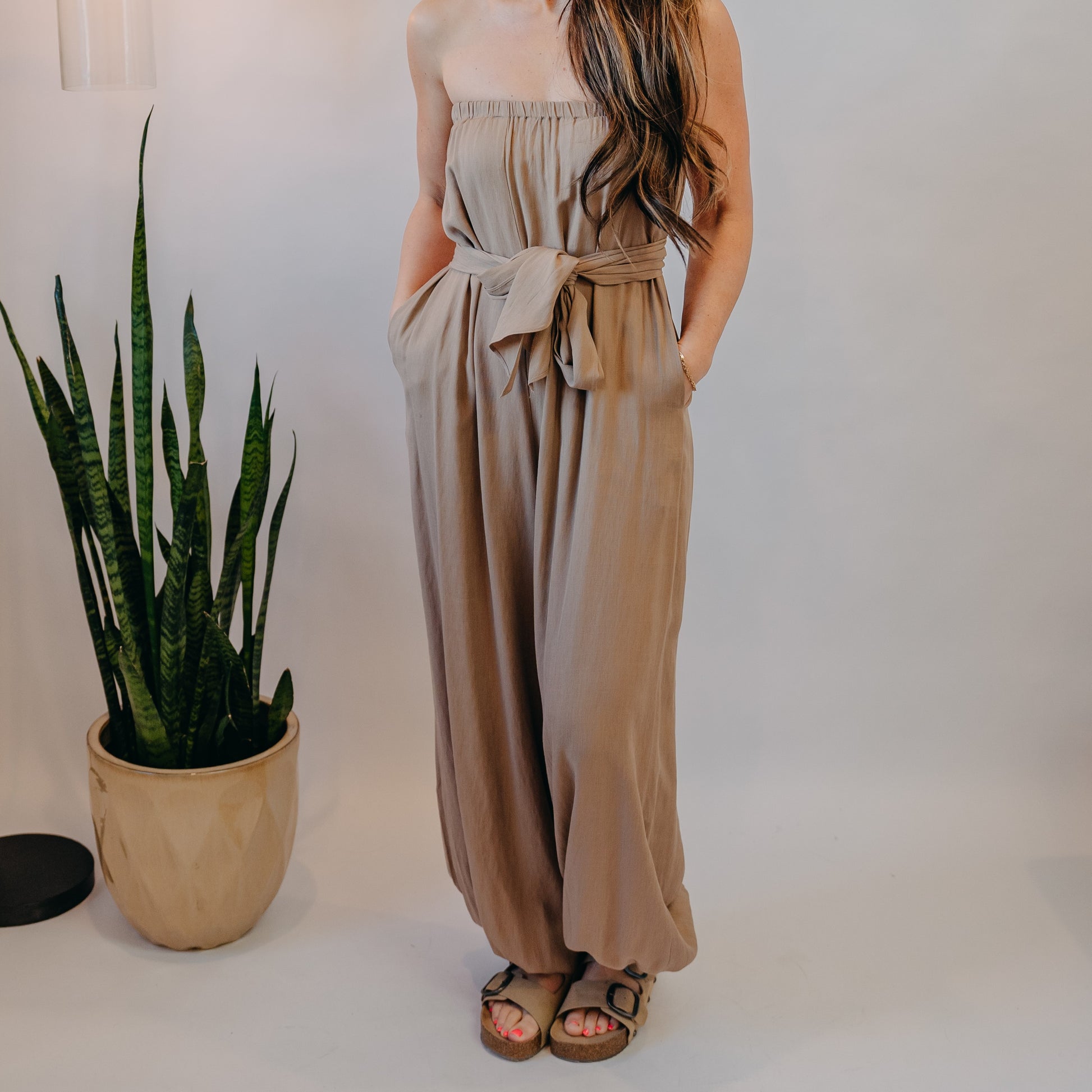 Fun2Fun | Front Tie Tube Jumpsuit | Taupe