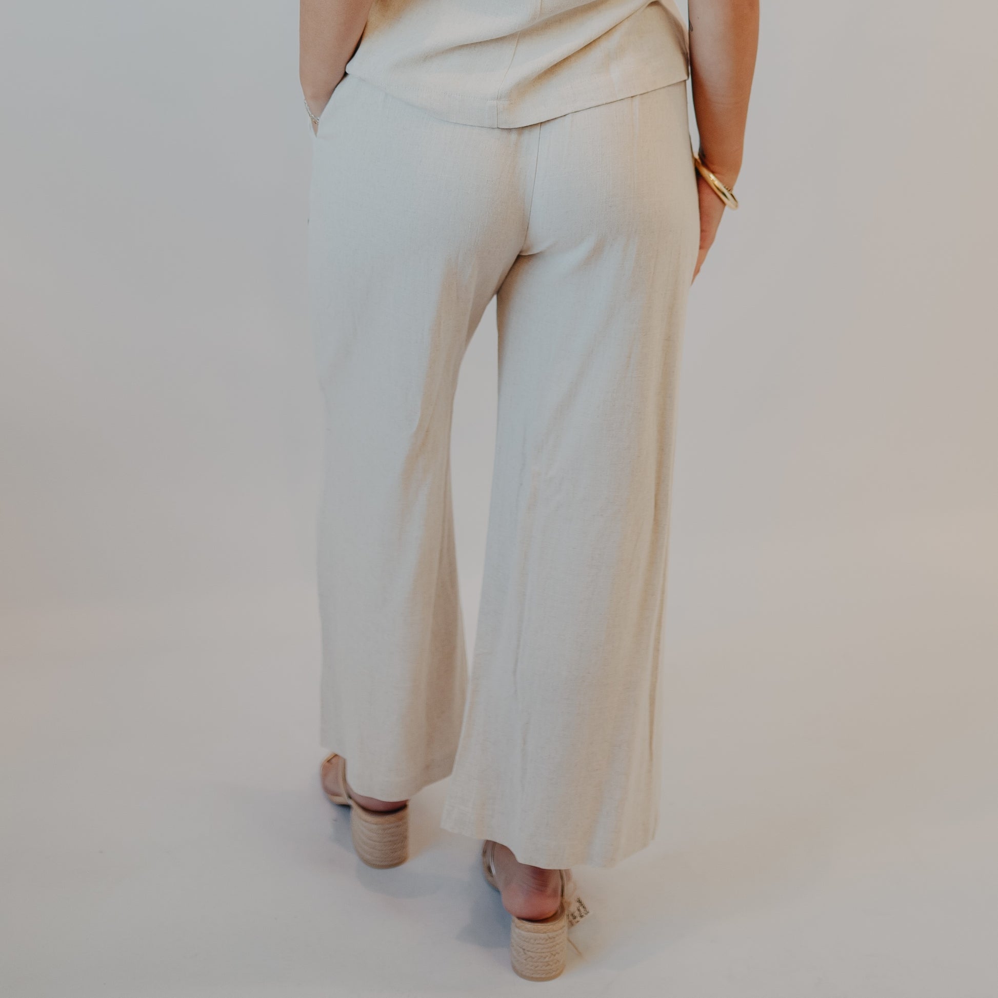 These wide-leg linen-blend pants are everything your warm-weather wardrobe needs. Designed with a high elastic waist, they offer comfort and ease without sacrificing style. Pair with the coordinating tank for an effortlessly put-together moment or mix with your favorite basics.
