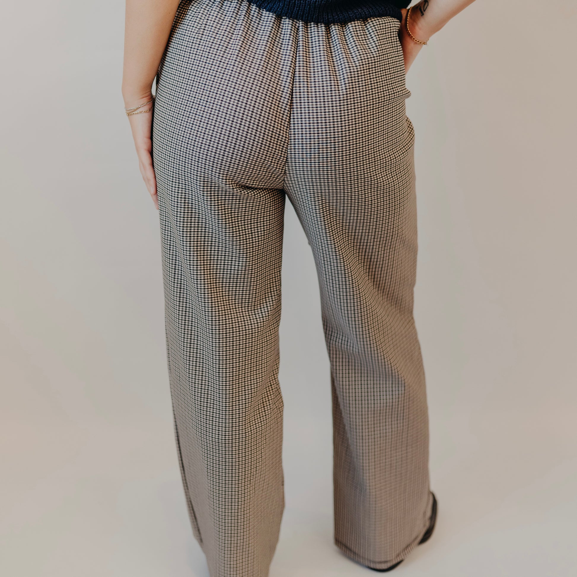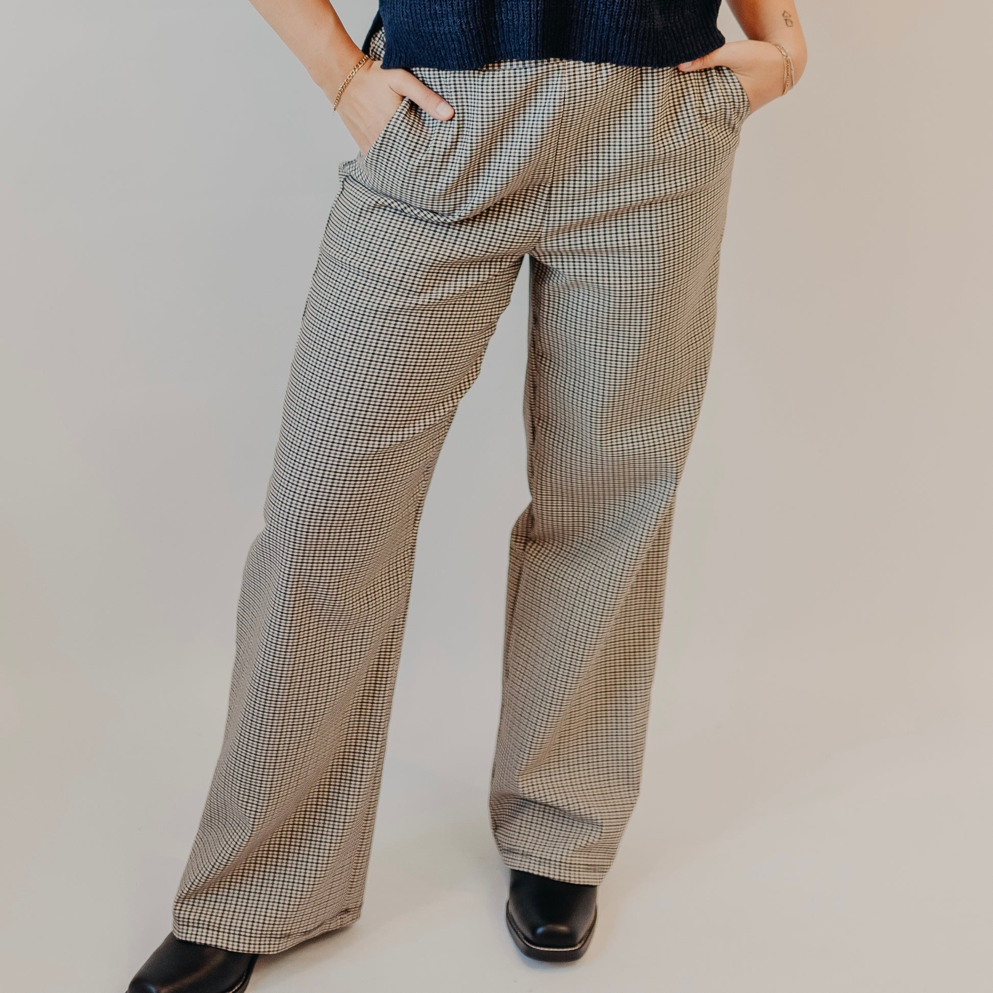 Elevate your everyday look with these chic houndstooth trousers. Designed with a straight-leg silhouette and an easy elastic waistband at the back, they combine timeless tailoring with all-day comfort. The classic grey-and-cream pattern brings just the right amount of sophistication—perfect for pairing with a cozy knit or a crisp button-up.