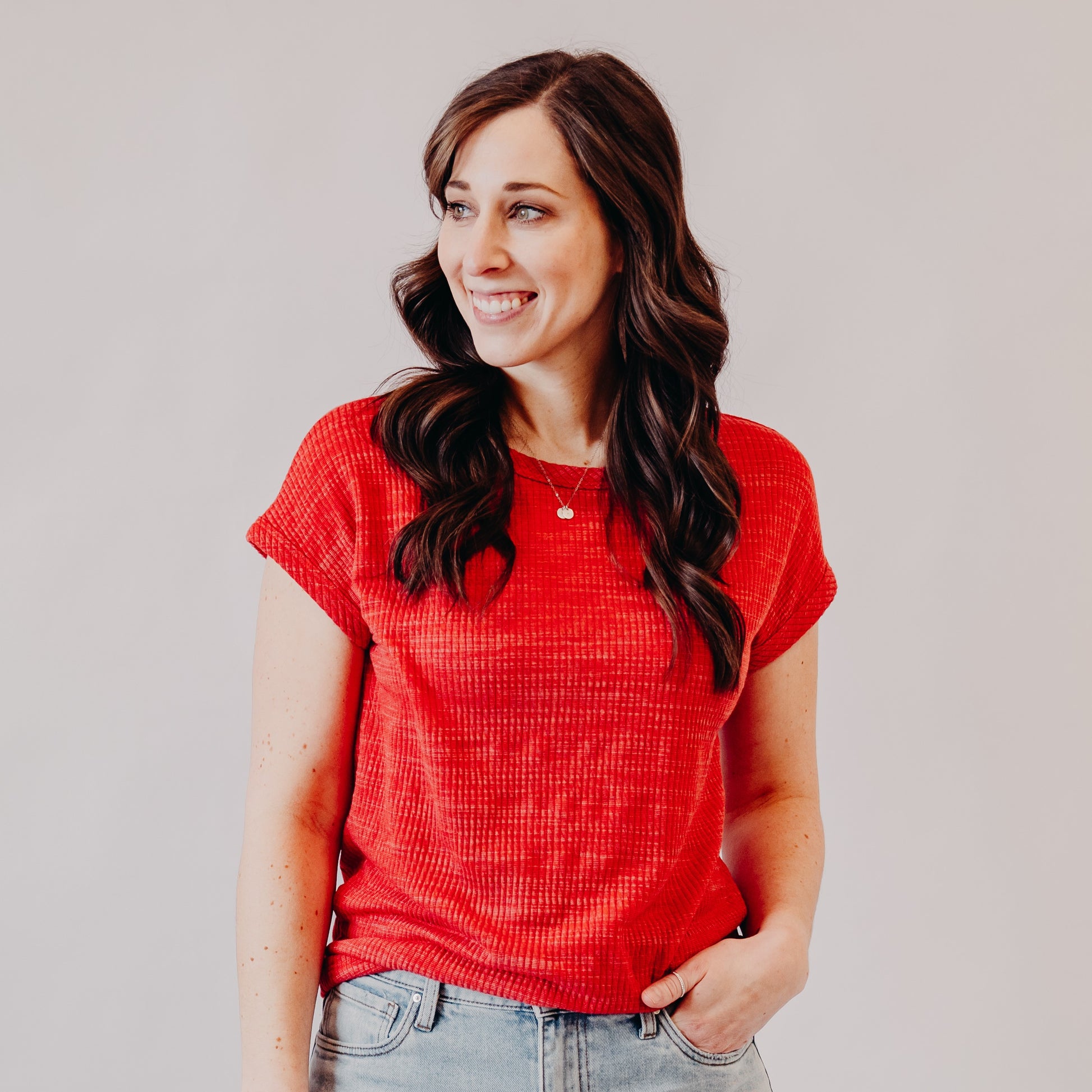 Staccato | Textured Knit Crew Neck | Red