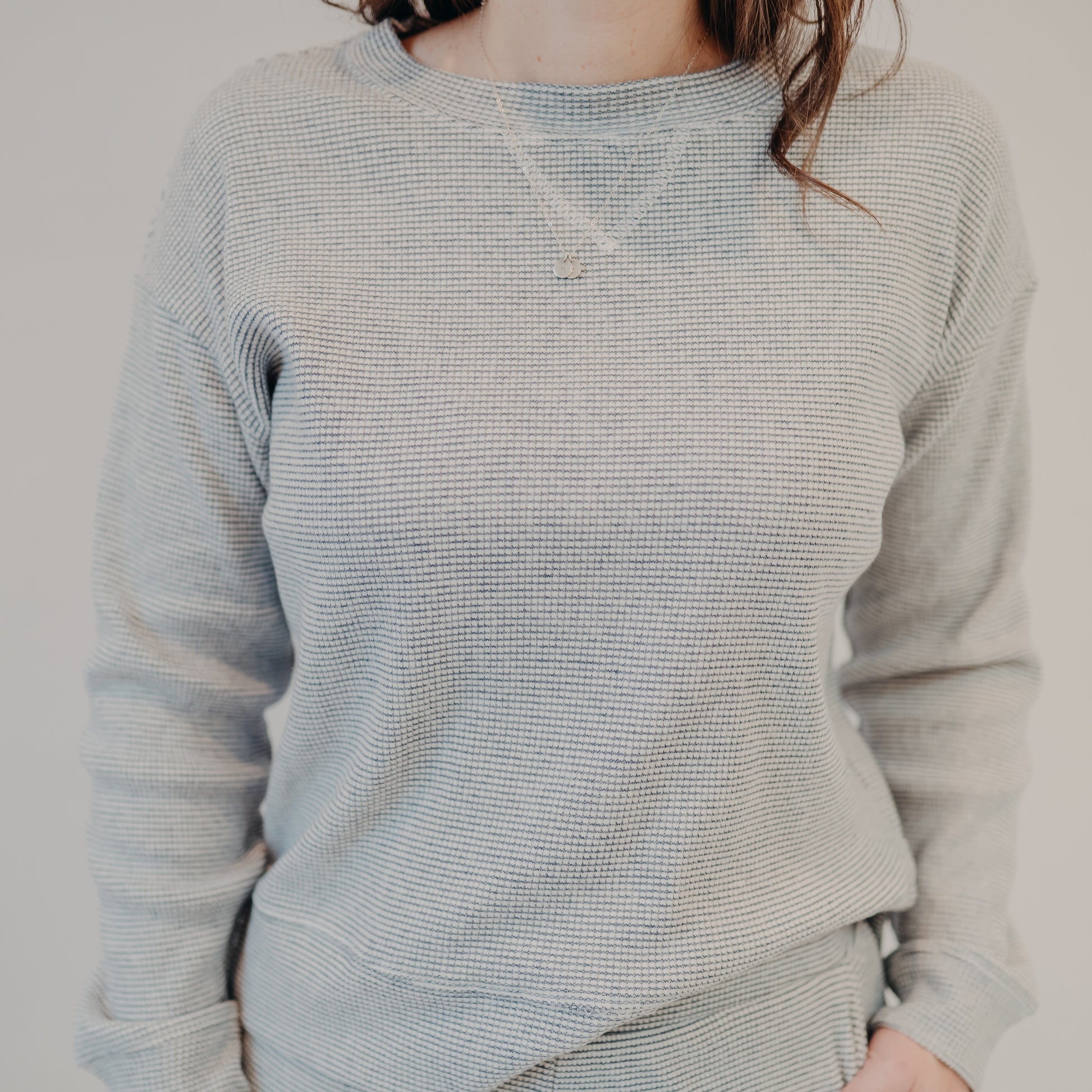 Effortless and cozy — this soft waffle-knit pullover is made for lounging or laid-back weekends.