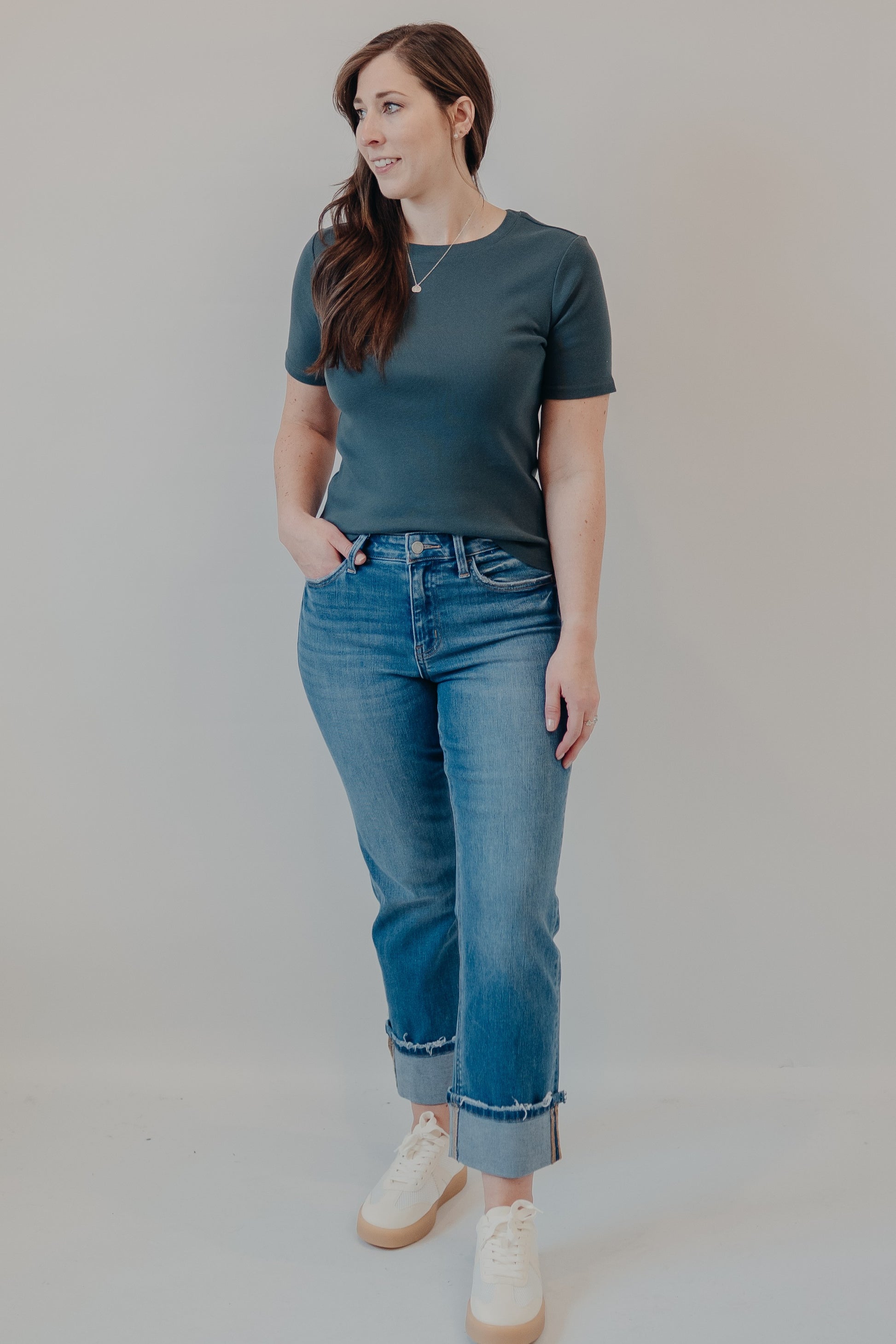 A relaxed straight-leg jean with an effortless, vintage-inspired vibe—finished with a statement cuff for easy, everyday styling.