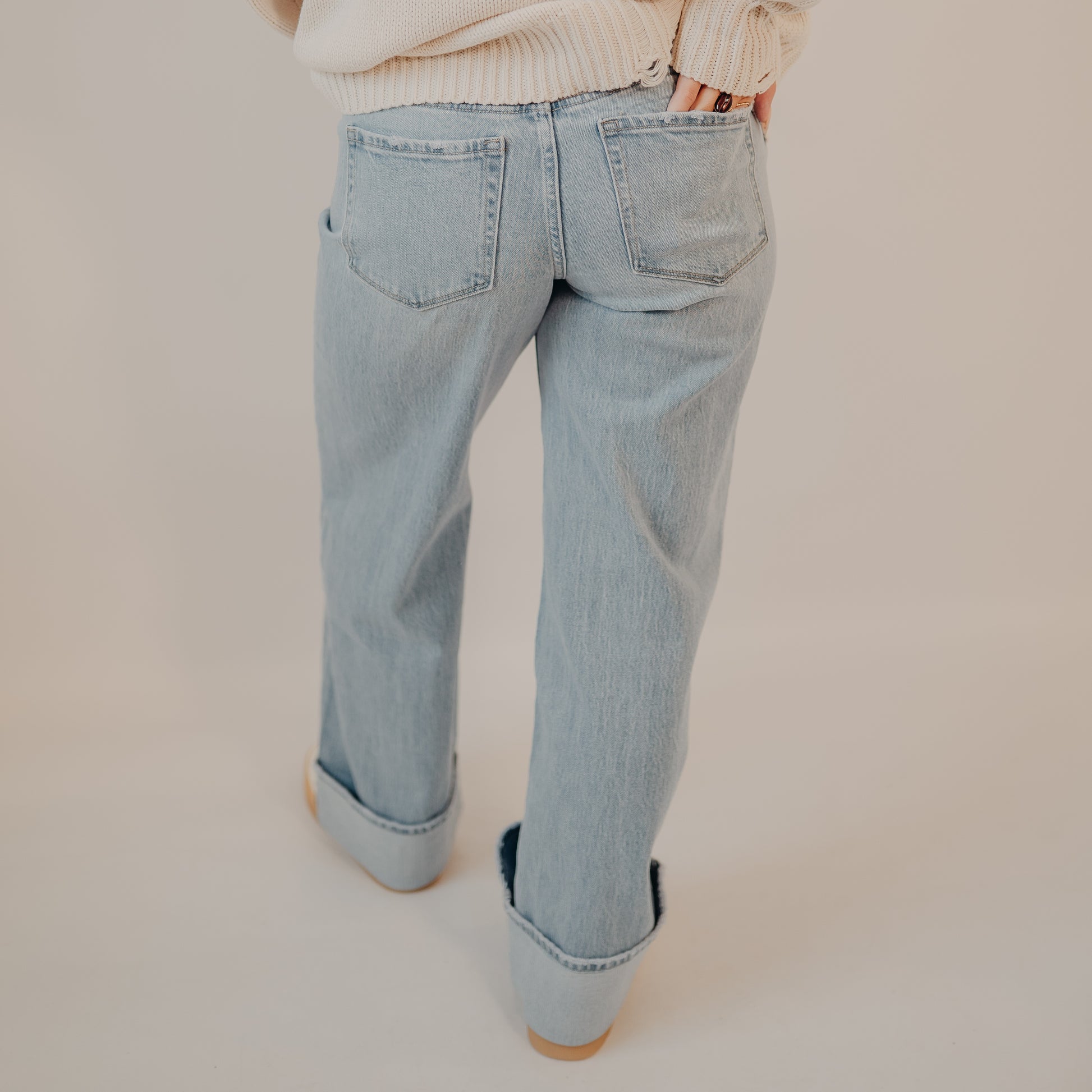 Laid-back and undeniably cool, these jeans feature a baggy wide leg and low-rise waist for that effortlessly relaxed vibe. The statement cuff adds just the right amount of edge, while the light wash makes them perfect for pairing with everything from oversized knits to cropped tees. A weekend essential you'll want on repeat.
