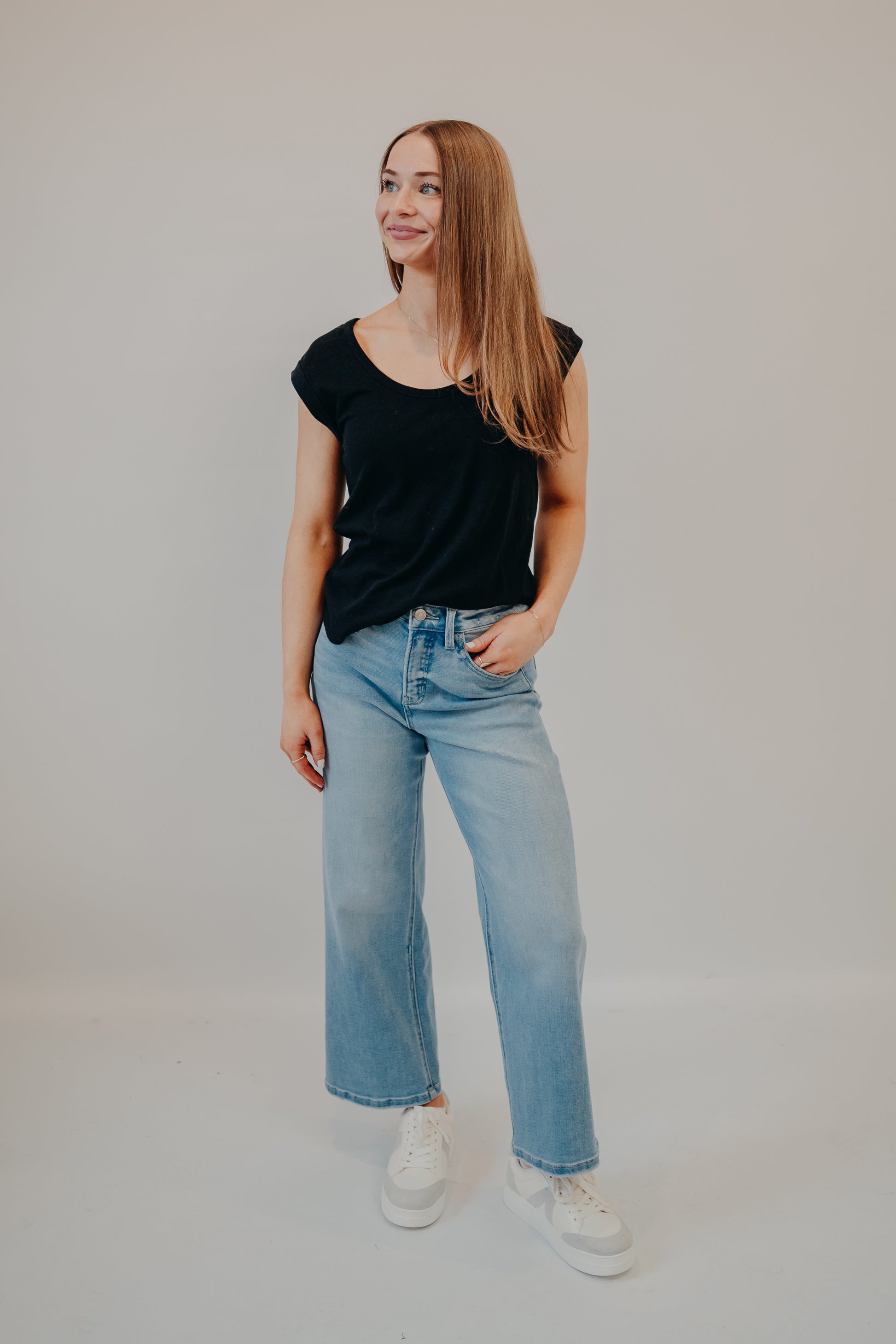 A soft and easy everyday tee with a relaxed fit and subtle cap sleeves — the kind you throw on with denim, layer under a jacket, or keep on repeat all year long.